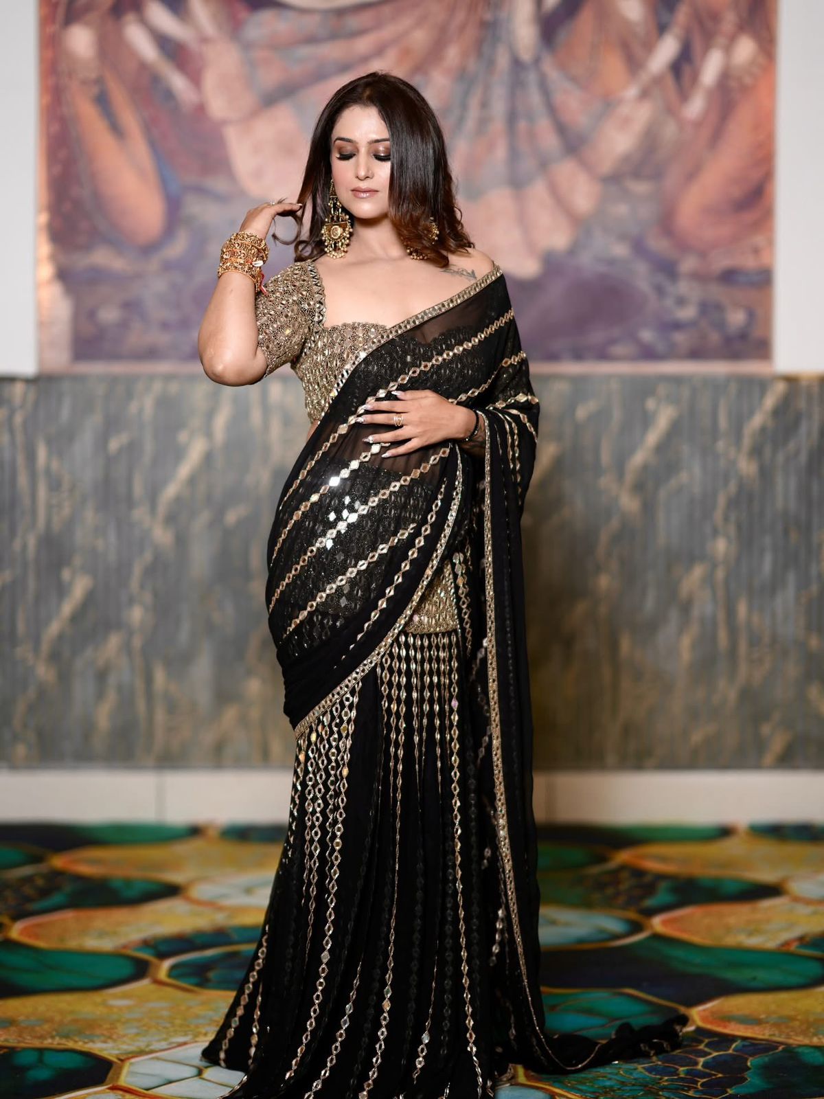 DFG Luxe Mirror-Embroidered Ready-to-Wear Saree-DFG-1812