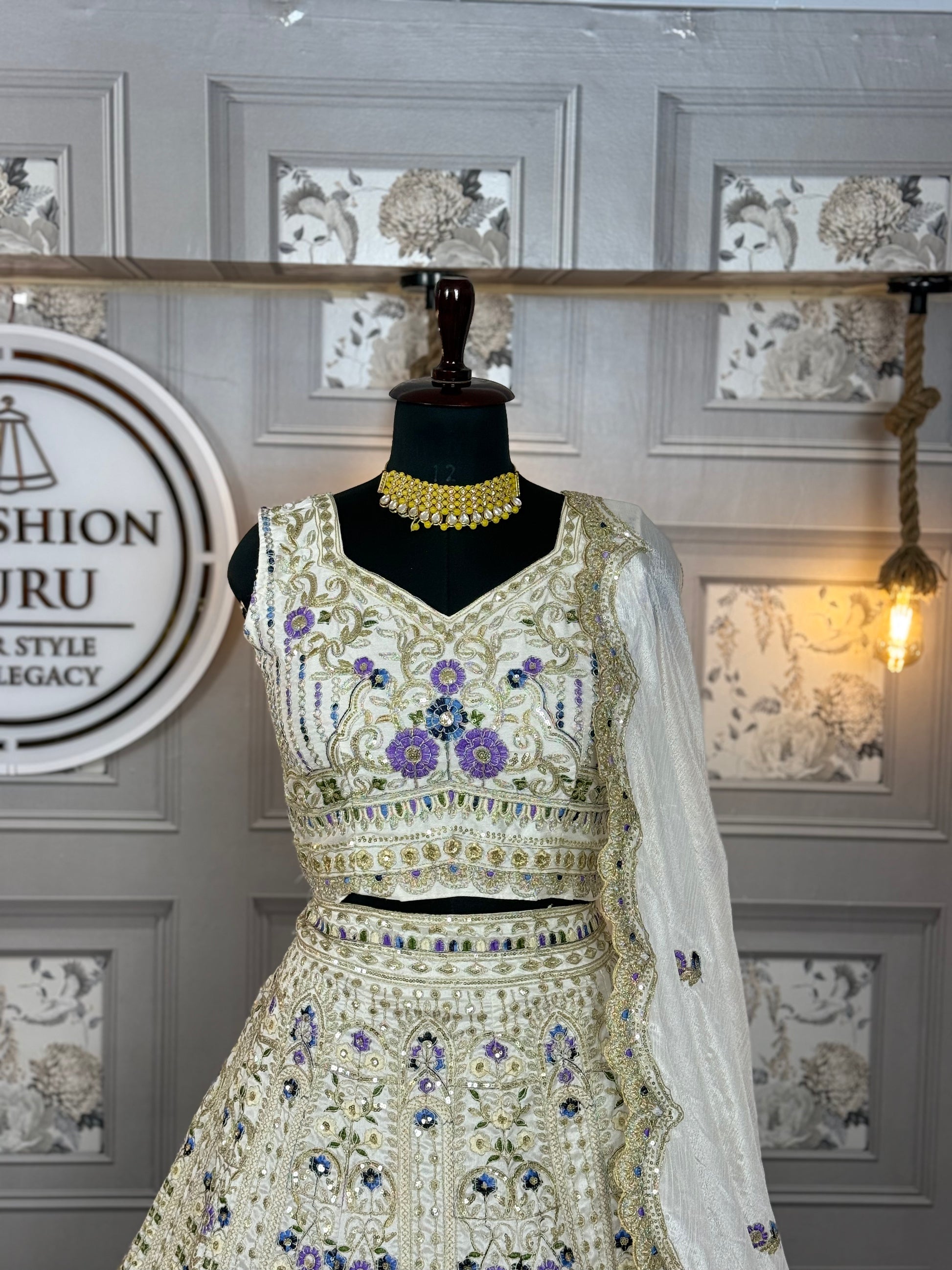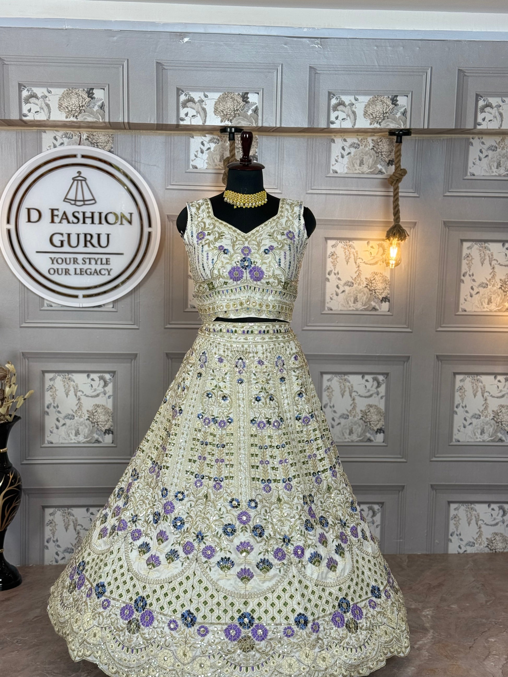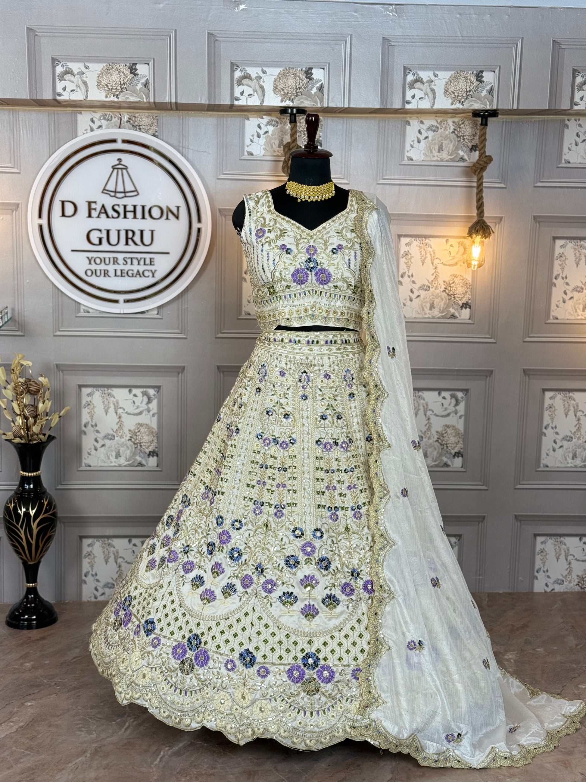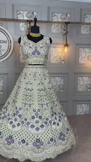 ✨ With its luxurious satin silk shine, intricate sequin artistry, and flowing chinon dupatta, this lehenga set is the epitome of festive glamour and sophistication. Pair with statement jewelry for an effortlessly regal look.