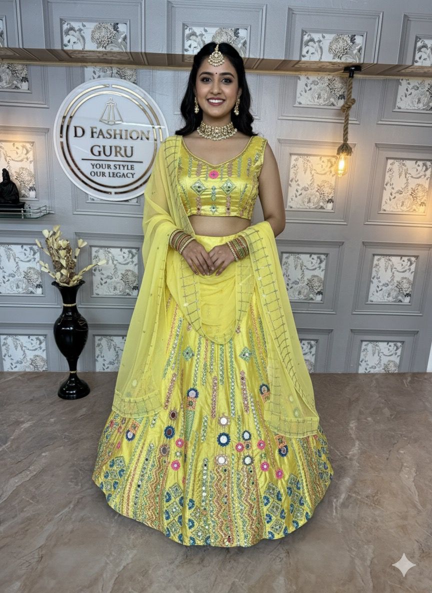 ๐ Lehenga Work โ Real Mirror Embroidery Sequins Work with Cancan & Canvas Patta