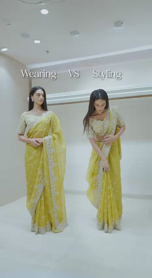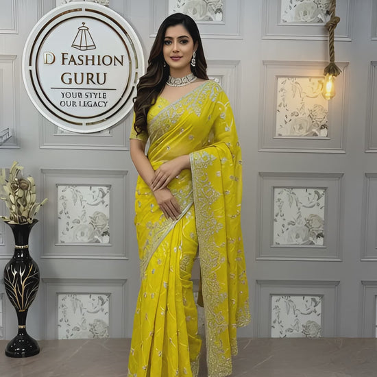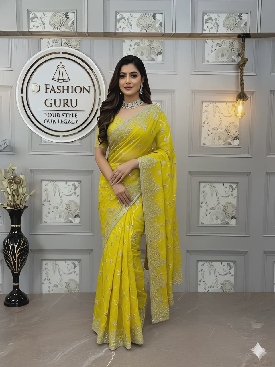 Drape yourself in luxury and let your style speak elegance with this radiant Tabby Silk creation — perfect for weddings, festivals, and evening parties!