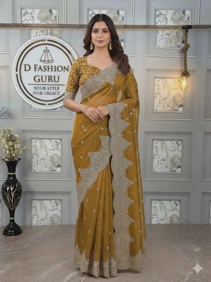 Step into sophistication with this Fendi Chiffon Designer Saree, a perfect balance of luxury and style. Crafted with meticulous Thread and Sequins Embroidery, this saree radiates charm and makes every occasion special. Its flowy texture and detailed craftsmanship ensure you stand out with effortless grace.
