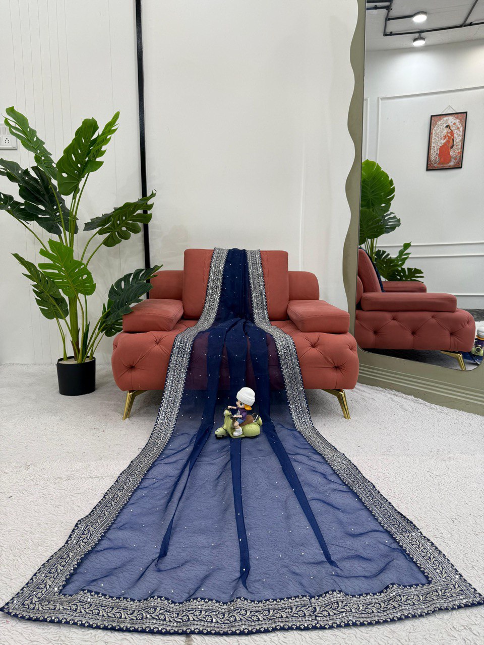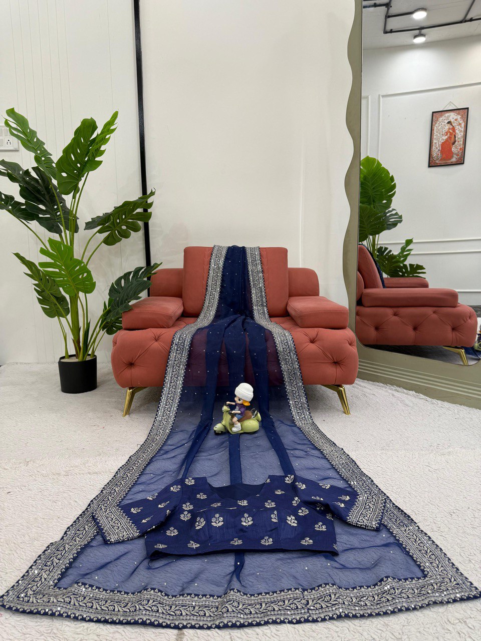 Drape yourself in sheer elegance with this Designer Saree that beautifully combines luxury and charm. Made from Heavy Organza Silk, this masterpiece is embellished with intricate Thread and Sequin embroidery, highlighted by dazzling LCD 💎 Diamond work all over — adding a sparkling finish that catches every eye.