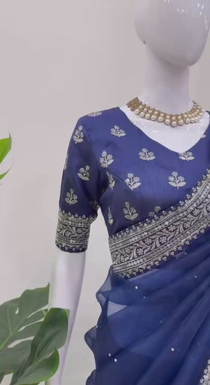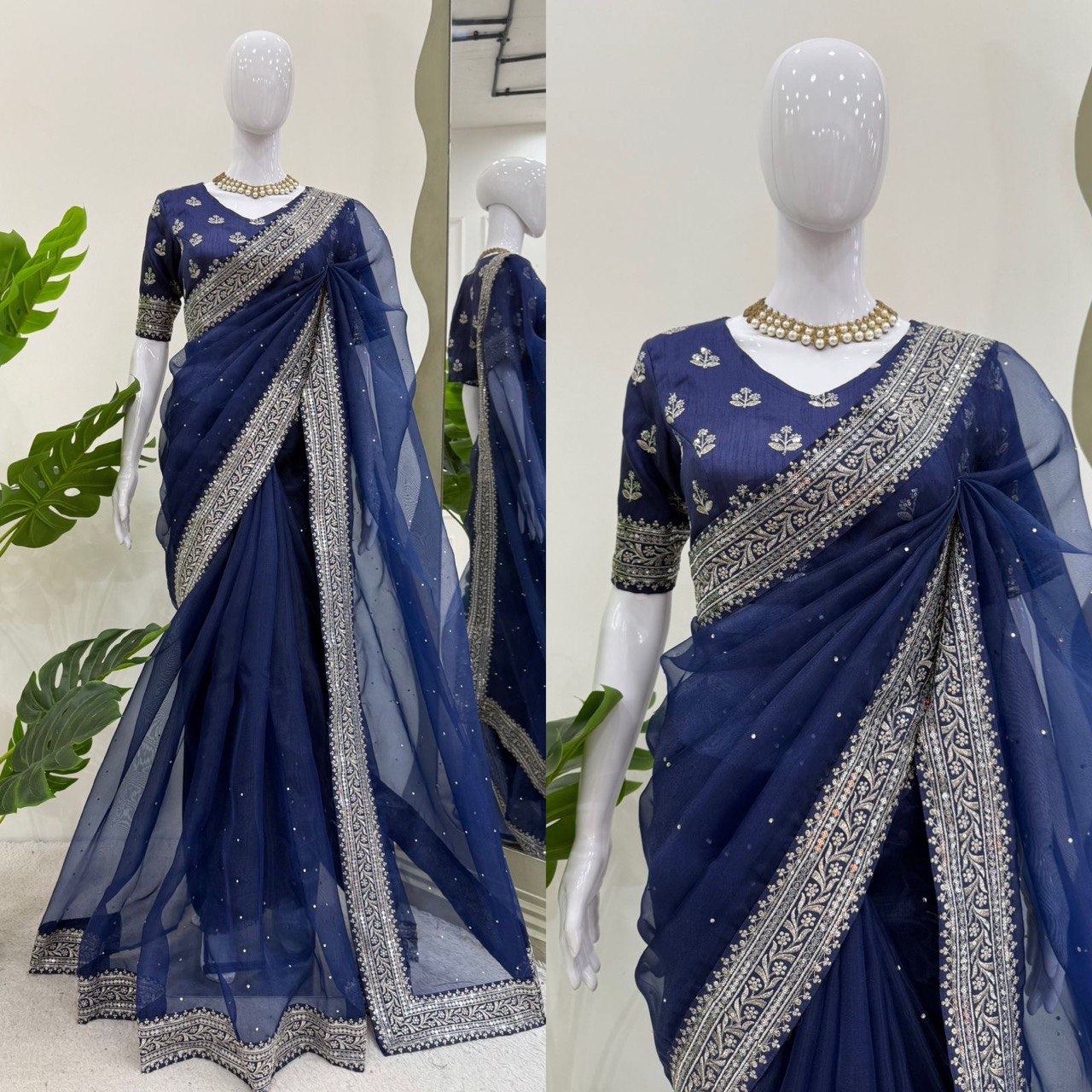 ✨ Topic: Radiant Organza Silk Designer Saree with LCD Diamond Work ✨