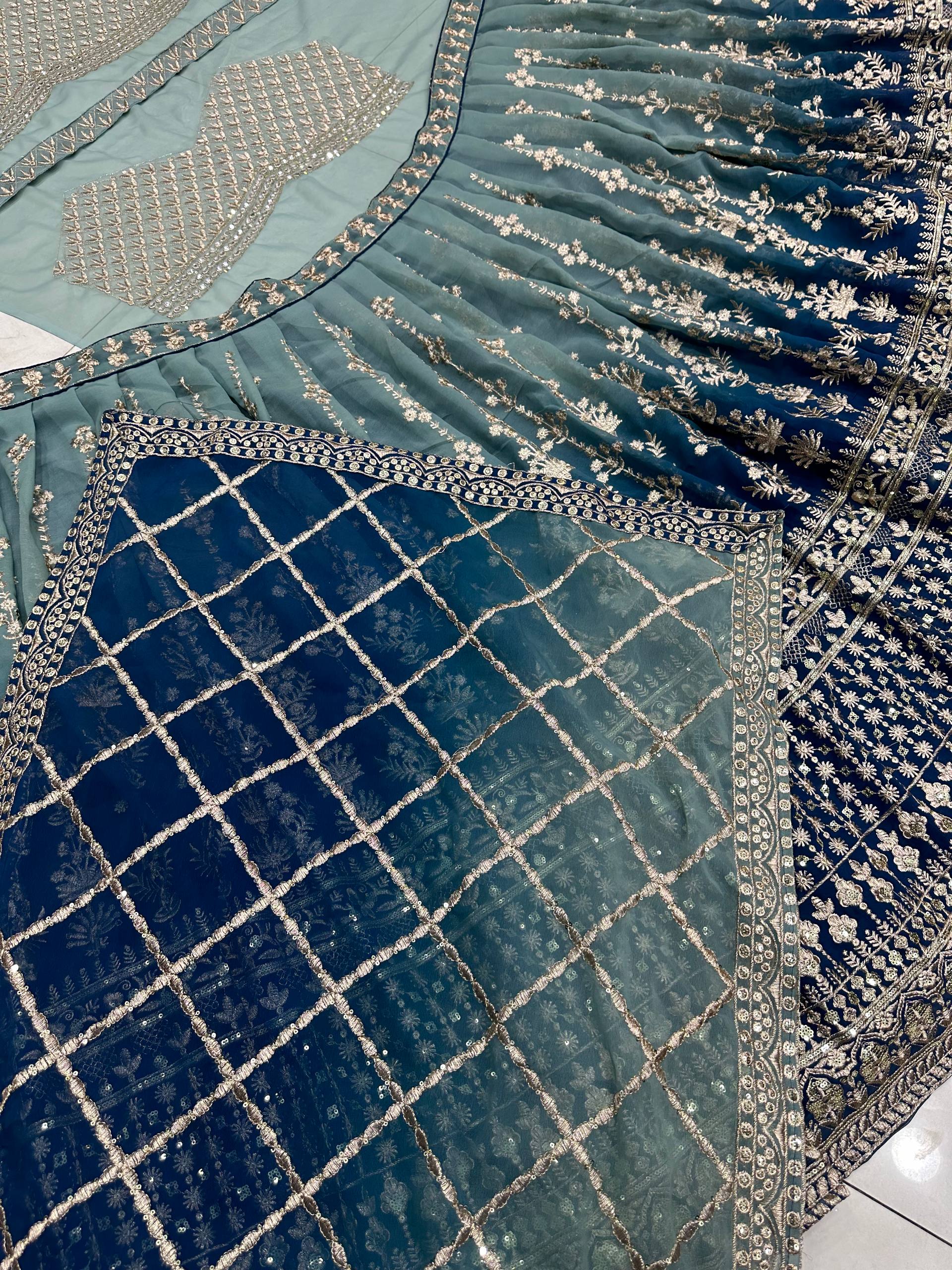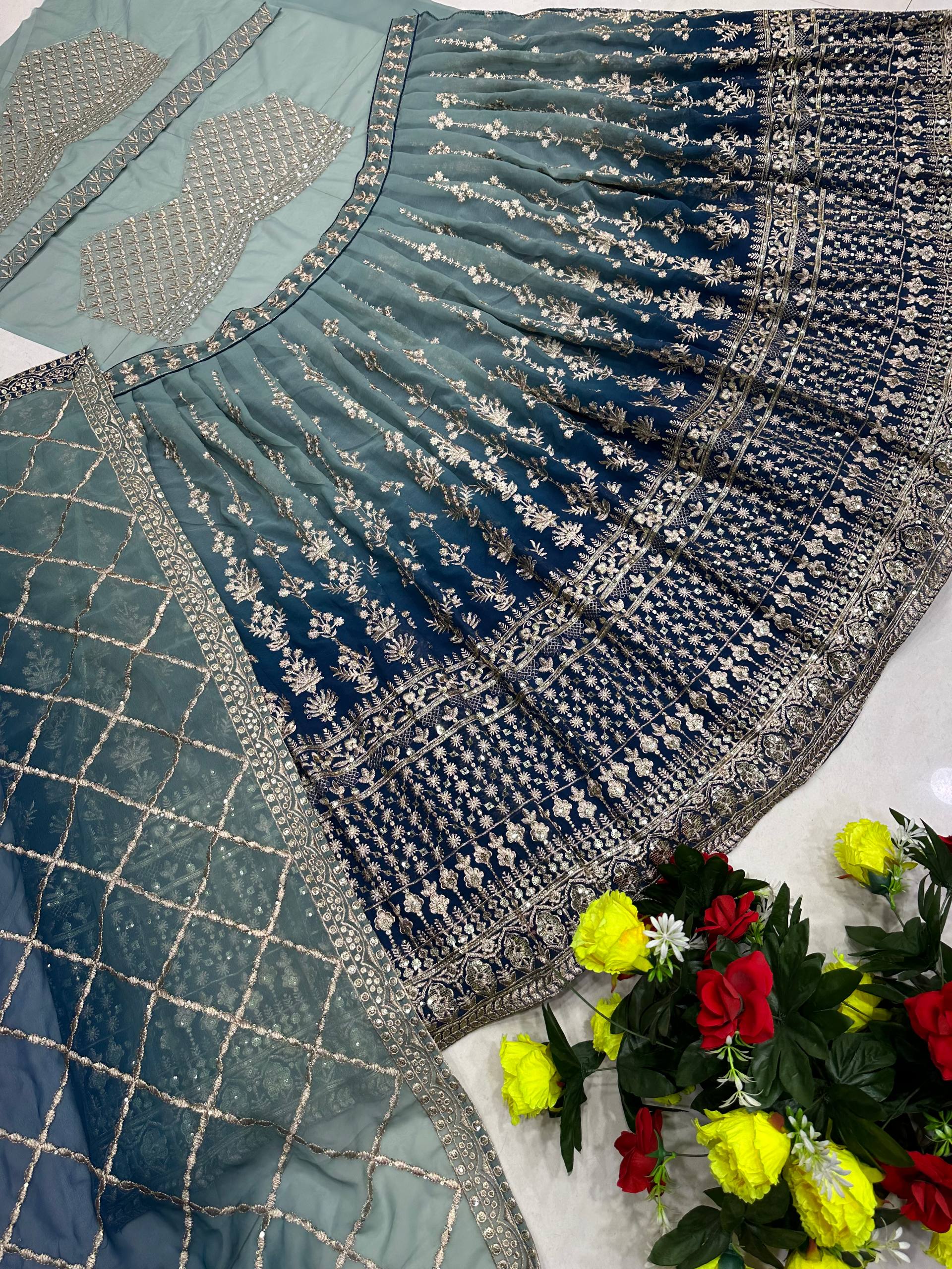 πΌ Step into the spotlight with this elegant faux georgette lehenga, featuring exquisite digital prints and sequin embroidery that radiate royal grace and festive charm.